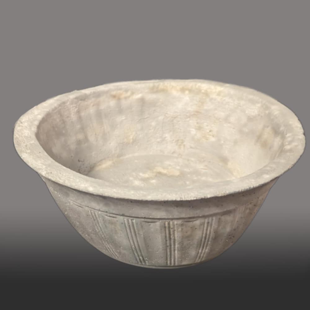 Fluted design round concrete planter with pre-drilled drainage hole.